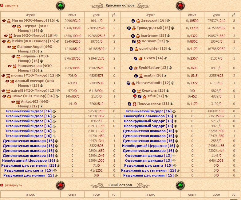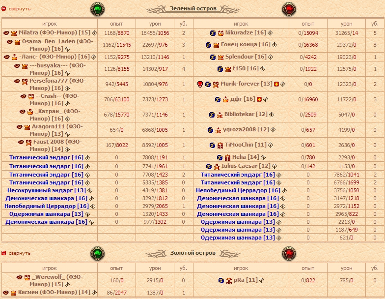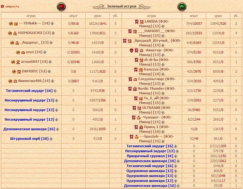 наколотил 36 тысяч, но на втором-третьем местах по урону у миноровцев ребята с 16-ю тысячами. А когда из пяти героев дуэли сразу четверо представляют одну из сторон... Тогда победа этой стороны неминуема. Wolfsangel остаются весьма тёмной лошадкой гонки. Вроде бы по составу - место им в "серебре", причём не факт, что среди лидеров, но они максимально выкладываются каждый тур и пока держатся в топ-10.