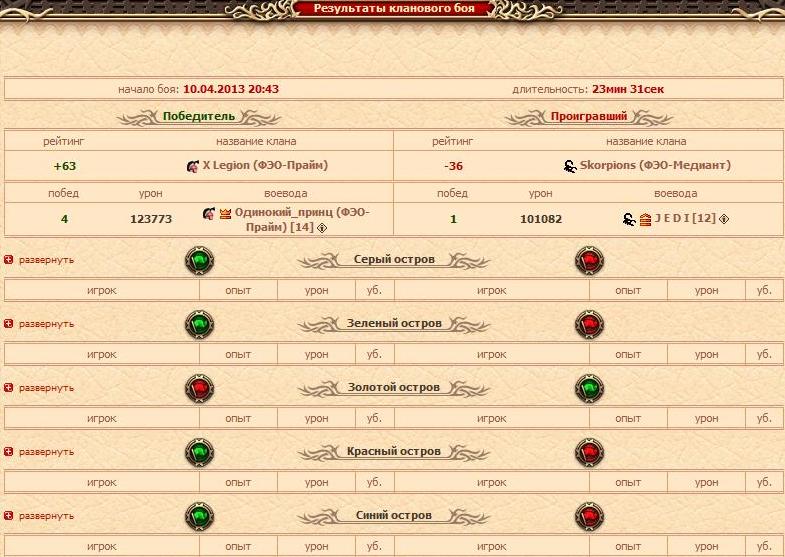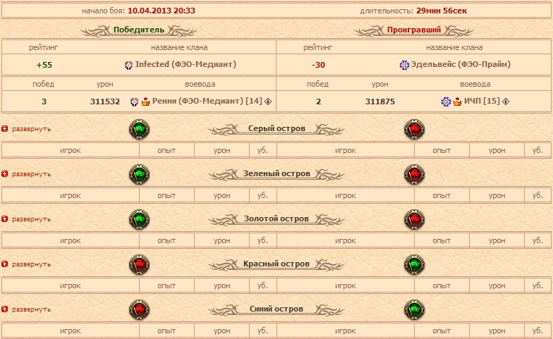 Смена лидера, реванш Хантеров, четырёхкратное "Ура!" на Медианте... Очередной тур Клановых войн выдался весьма насыщенным. Вот что значит - никаких бойкотов, кланы дружными рядами приходят на радужные острова и кроят турнирную таблицу в соответствии со своими достижениями в боях. В общем, среда, 10 апреля, 13-й тур Клановых войн, поехали.