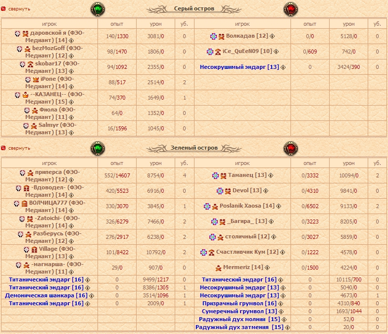 OminousGlow. В итоге получилось несколько раньше, ибо Оминоусы свою дуэль в среду проиграли, о чём чуть ниже. Избранные же оказались смещёнными с четвёртой позиции на шестую. Боёв, по сути, было два - серый и синий острова. И оба показали то, что ДГ демонстрирует практически в каждом туре - карусель воскрешений, яркие индивидуальные выступления особо "укушанных" магмар. Учитывая средний уровень бойцов ДГ, стремительно приближающийся к цифре 16.... упрямься - не упрямься, а 5-0 или 4-1 в итоге гарантированы, если вы не клан с названием